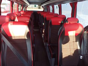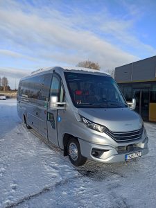 Ees Iveco originaal kliimaseade,cruise control- püsikiirusehoidja, turvavööd, 28 tk reisijaistmed reguleeritava seljatoega/külgnihutusega, salongisoojendus, bussil tagaosas (suur) ja paremal küljel 2 pakiruumi: kokku ca 3m3 , öövalgustus(sinine)+tavavalgustud(LED),USB pistikud istmete juures, tagurduskaamera, multifunksionaalne ekraan juhile, Raadio Audiobus+mikrofon) WIFI-ettetellimisel (Eesti + Euroopa)